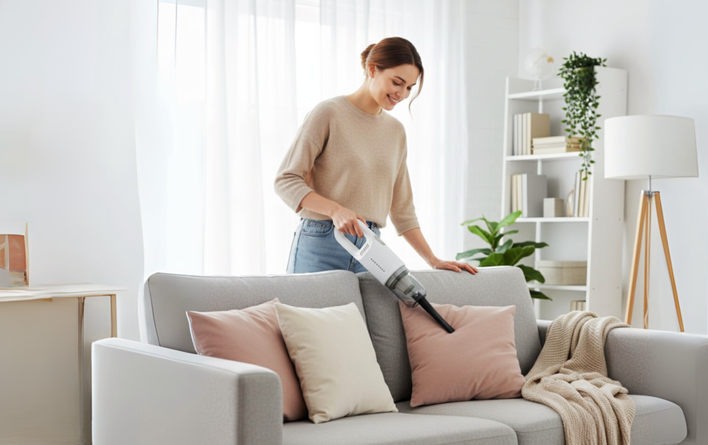Olvídate de ocupar espacio con accesorios de limpieza. Nuestra aspiradora es ligera, eficiente y cabe en cualquier rincón. Permitiendo ahorrar espacio y limpiar Suelos, Sillones, Muebles, Rincones, Vehiculos, y todo tipo de espacios.